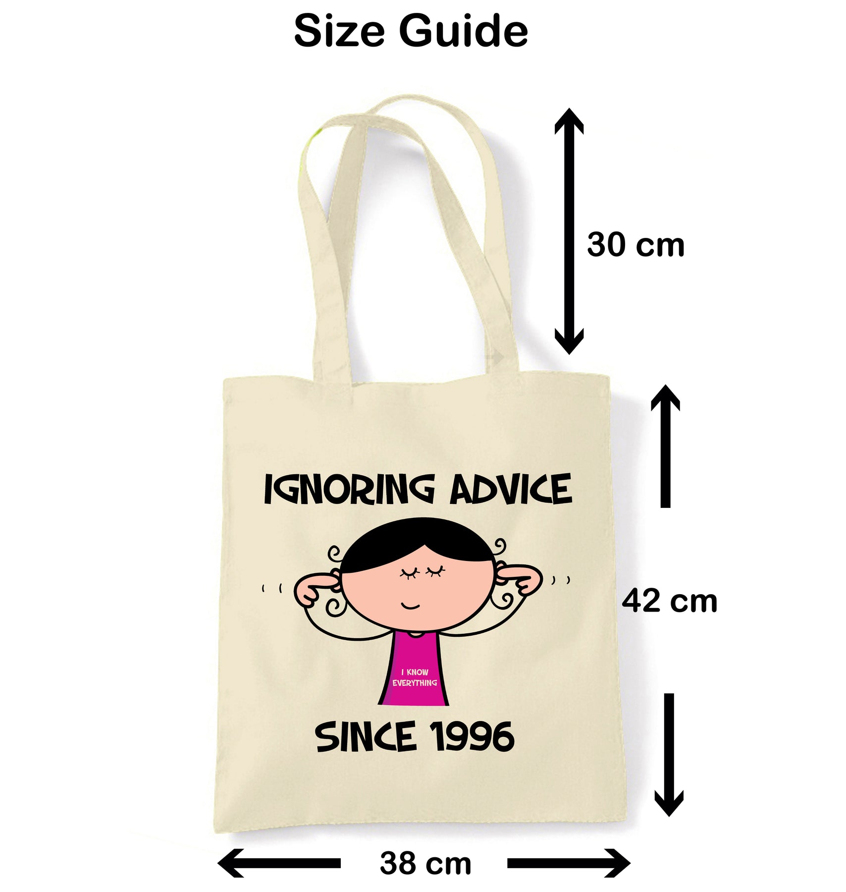 • Express Yourself: Embrace your individuality and sense of humour with our Ignoring Advice Since 1996 30th Birthday Tote Bag. It's the perfect accessory to showcase your fun-loving and confident personality.