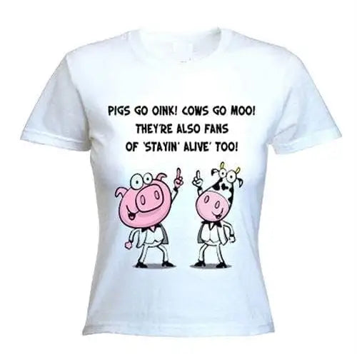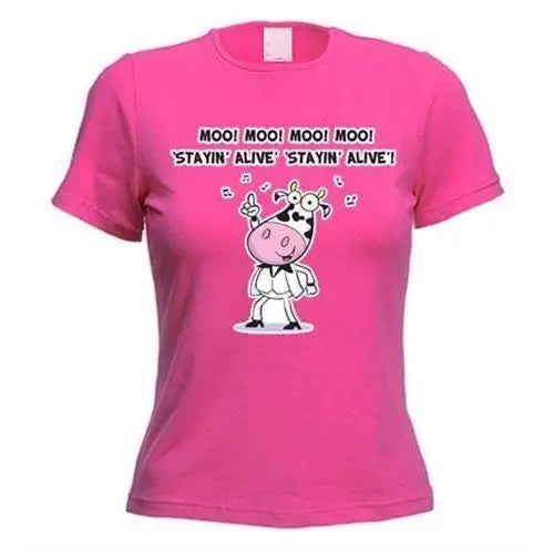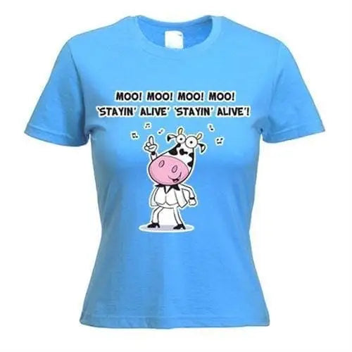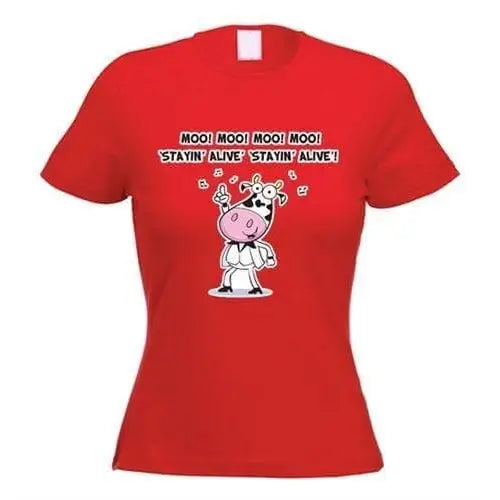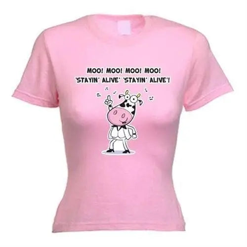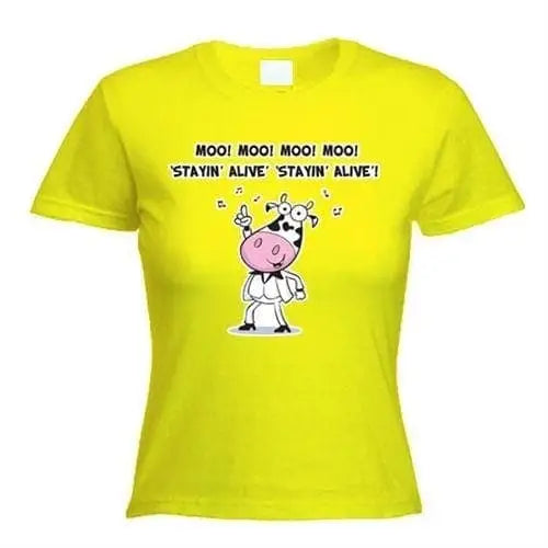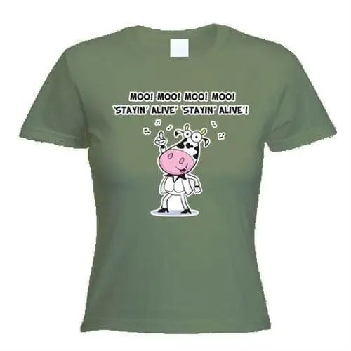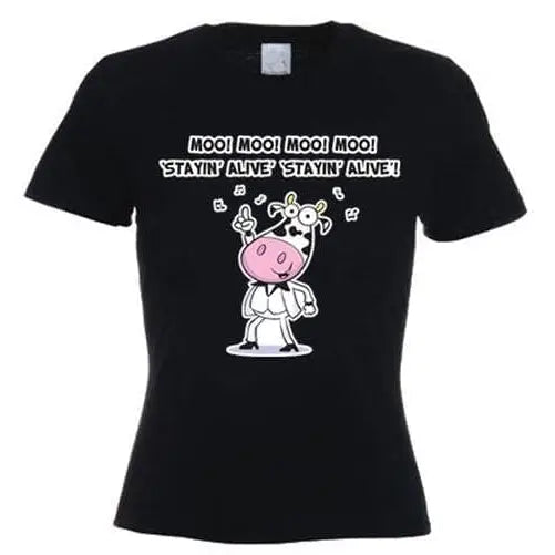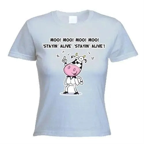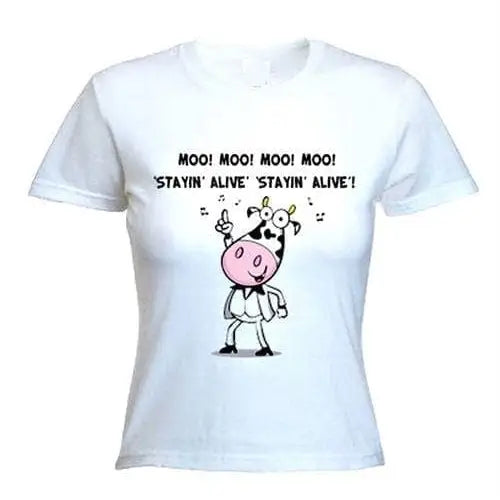 Stayin' Alive Cow women's vegetarian t-shirt.